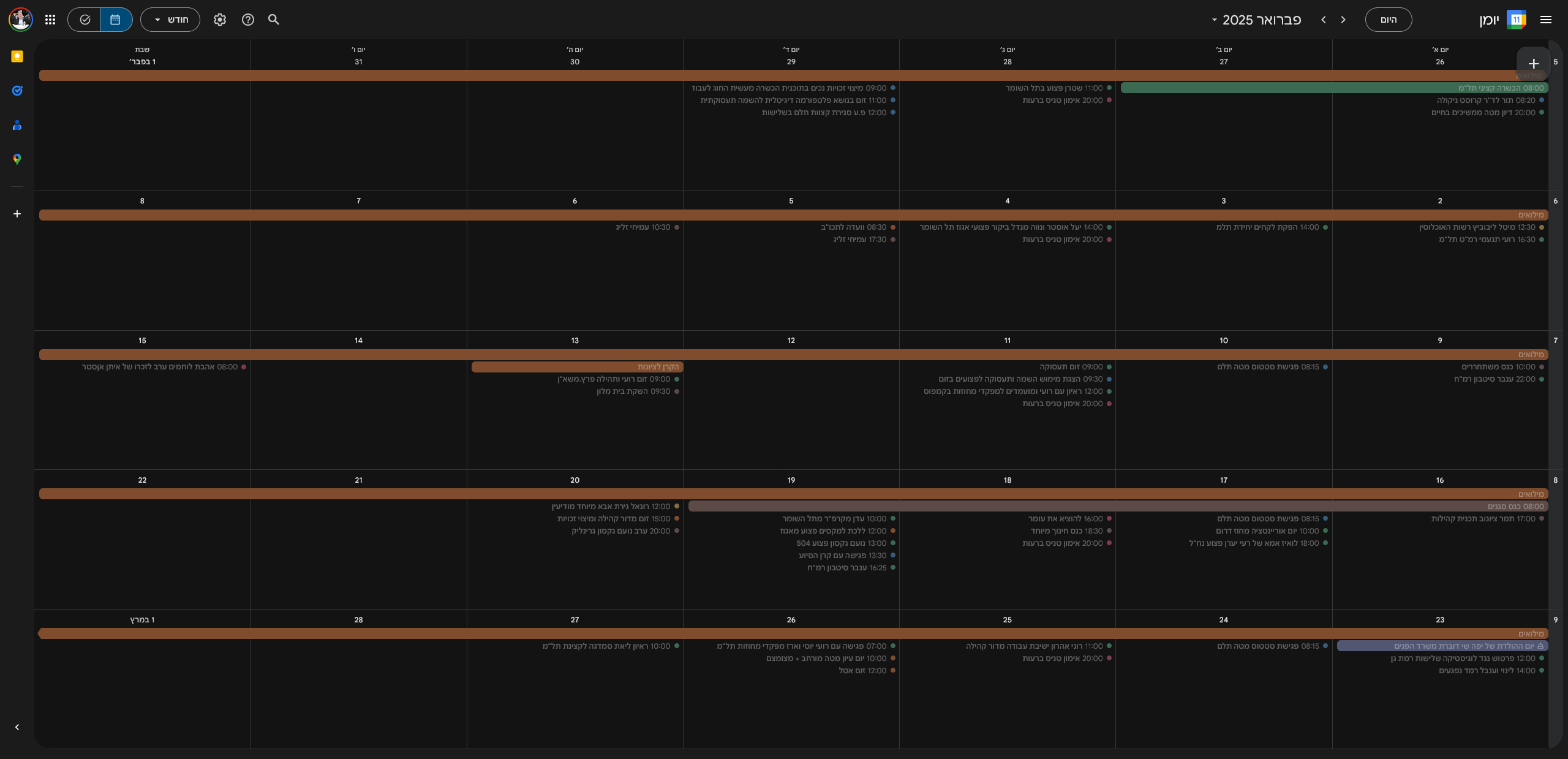 עיריית מודיעין מכבים רעות - יומן סגן ראש העיר עמיעד טאוב לשנת 2025 (רבעון ראשון)