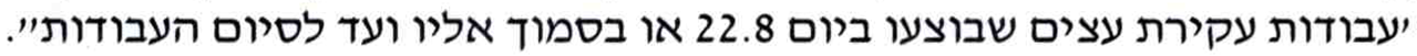 משרד הביטחון - עבודות עקירת עצים שבוצעו ביום 22.8.2025 או בסמוך אליו